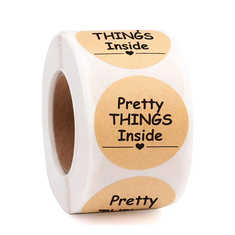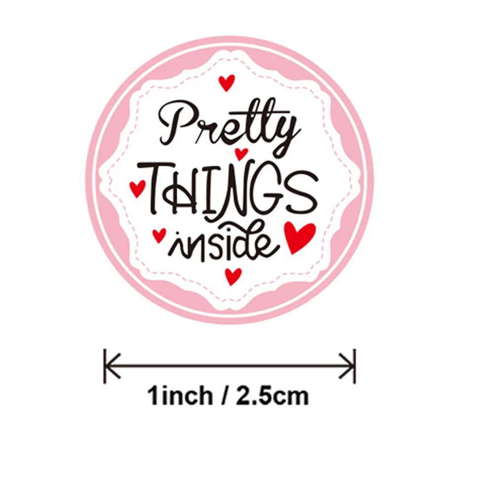 500pcs Pretty Things Inside Stickers 1” Round Pink Paper Adhesive Thank You Stickers Wedding party business Baking Seal Label Stickers