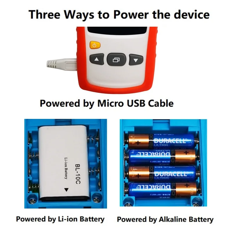 (Notice: power adapter is not provided, please use 1A mobile phone adapter to connect this USB cable to charge the Li-ion battery or power the device.you also can translate the data to the PC by the usb cable line.)