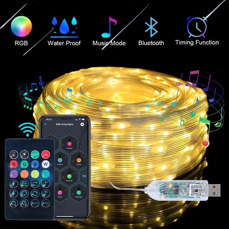 5/10M USB Christmas Tree String Lights with Smart Bluetooth App Remote Control Christmas Decor For Home Tree New Year 2023