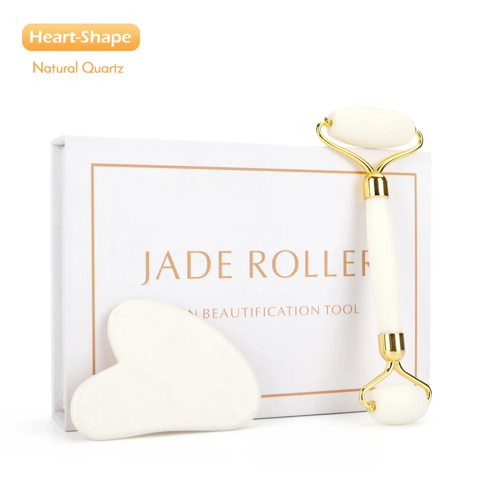 Natural Facial Massager Face Roller Gua Sha Scraper Double Heads Jade Stone Roller Skin Care Rose Quartz Massage for Face Body