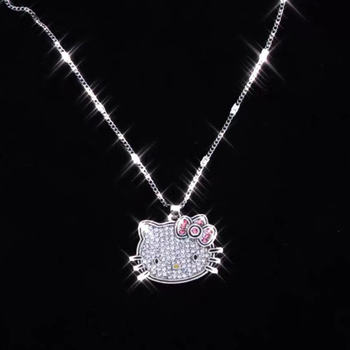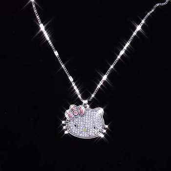 KAWAII Sanriod cartoon Anime Series Kitty crystal necklace Full Diamond Cute fashion Clavicle necklace Accessories BABY girl Gif