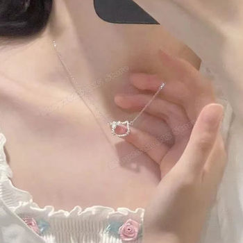 Kawaii Hellokitty Necklace Pink Heart Kitty Cat Bracelet Pendant Girls Clavicle Jewelry Personality Niche Design Sweater Chain