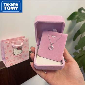 TAKARA TOMY Hello Kitty Sterling Silver Girl Sweet Girlfriend Collarbone Necklace Woman Elegant Diamond Pendant Ring Jewelry