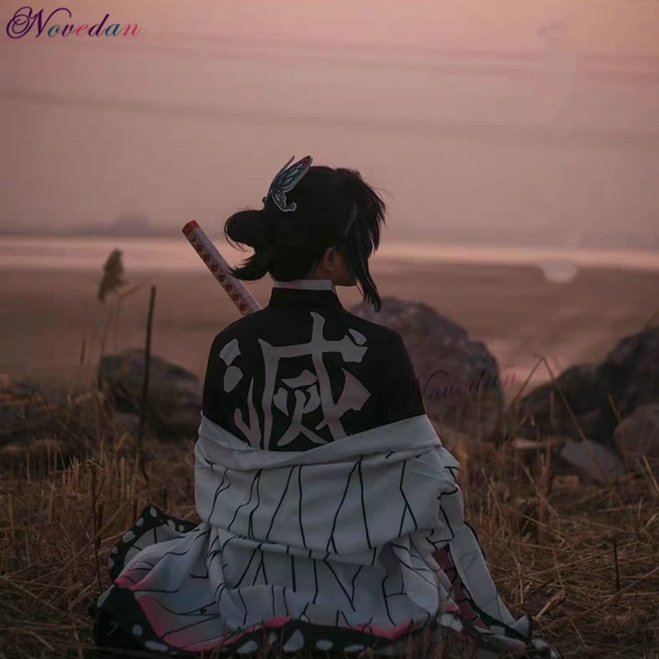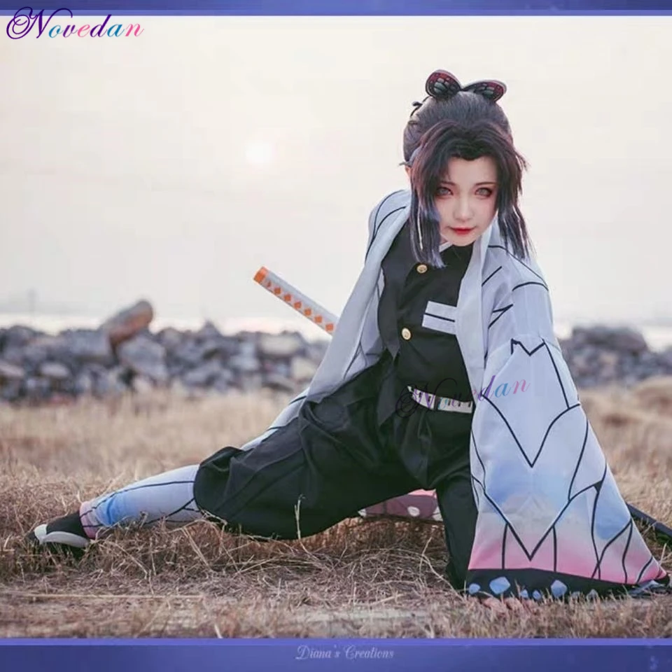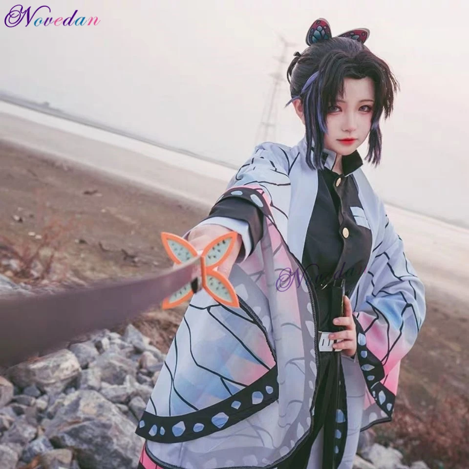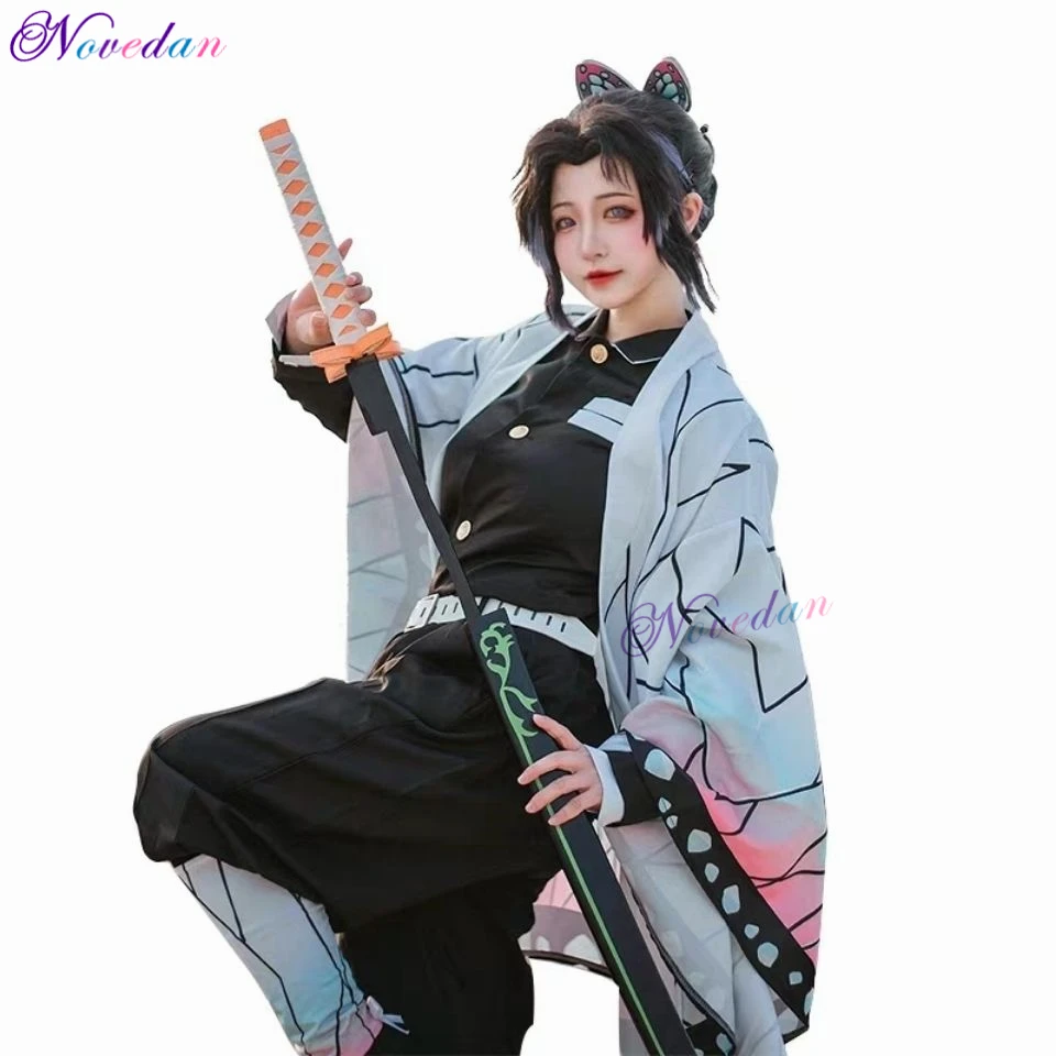 Anime Demon SlayerKimetsu no Yaiba Kochou Shinobu Cosplay Costume Women Kimono Uniform Halloween Carnival Party Costume Wig