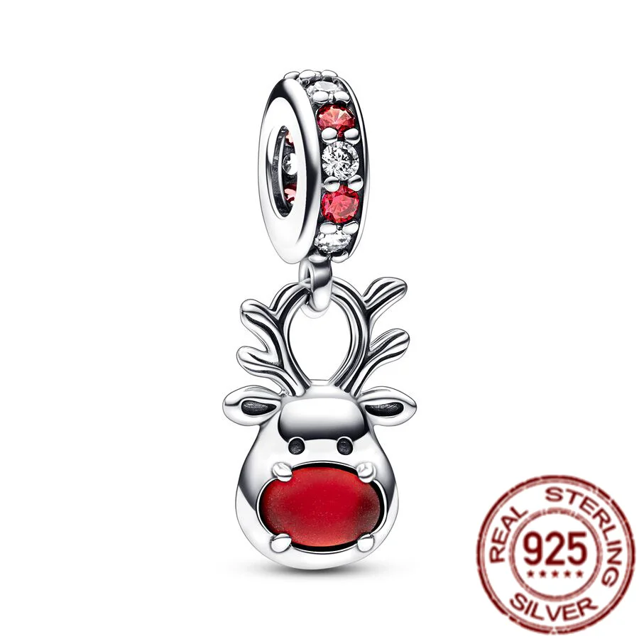 Christmas Tree Red Nose Reindeer Gingerbread Man Dangle Charm Bead Fit Original Pandora 925 Sterling Silver Bracelet DIY Jewelry