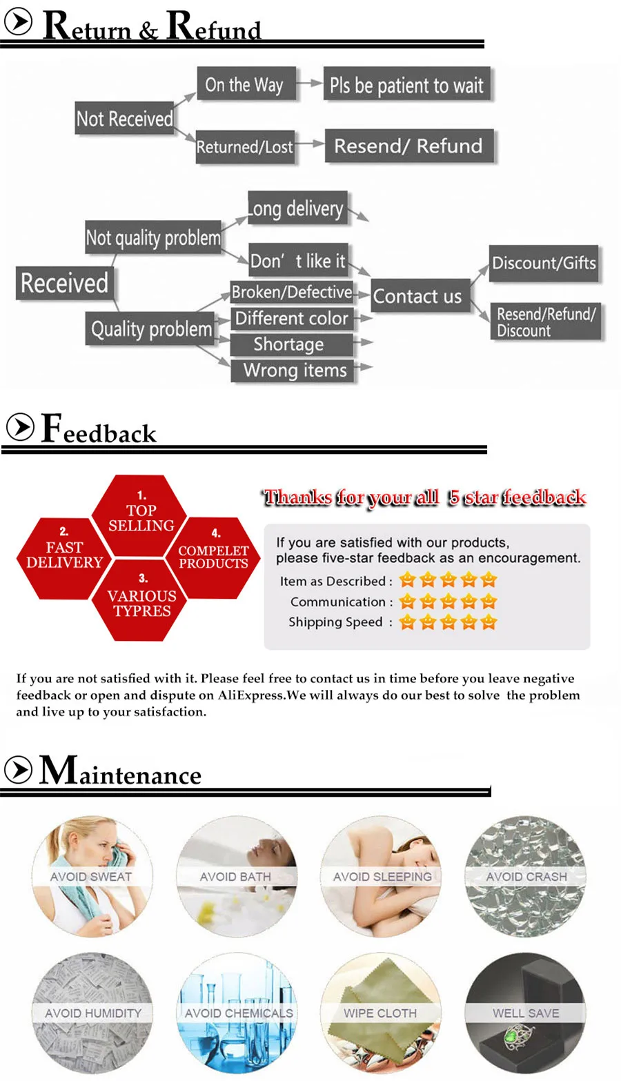 • If you received the wrong item you can request a refund or a reshipment.