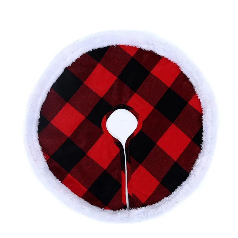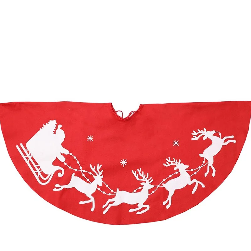 Christmas Tree Skirt 2022 New Home Hotel Christmas Scene Layout Pure White Plush Red Elk Printed Decorative Tree Bottom Skirt