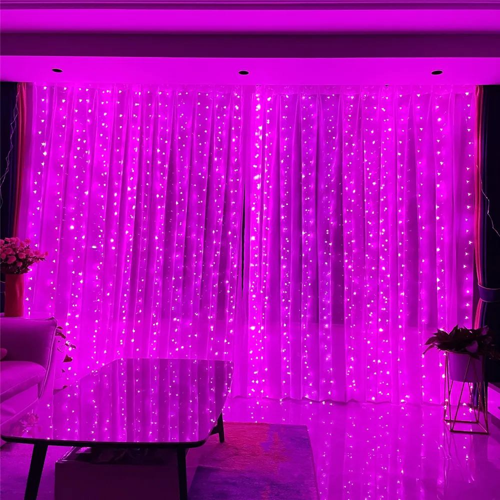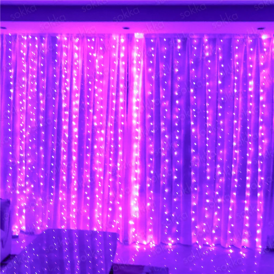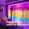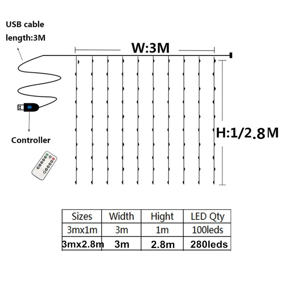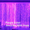 Size: 3M(L) * 3M(H) with 280 LEDs with hook for Rainbow Color, Blue Color, Pink Color,Purple Color.
