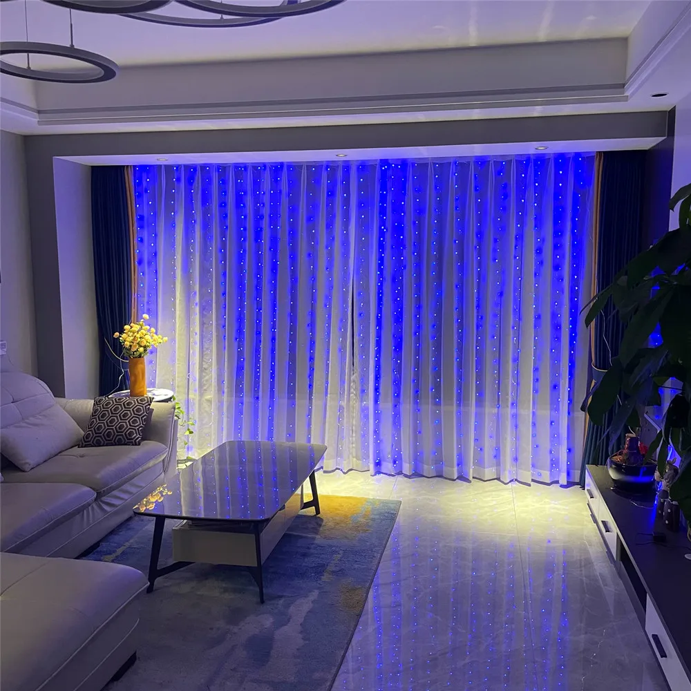 Colorful Rainbow Garland Curtain Lamp Blue Pink 3M LED String Fairy Light New Year Christmas Home Bedroom Window Decoration