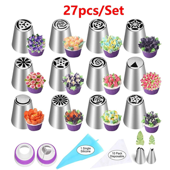 27 PCS Cream Nozzles Set Cake Decorating Tools Russian Piping Tips for Cake Tool Piping Pastry Bag Pastry and Bakery Accessories