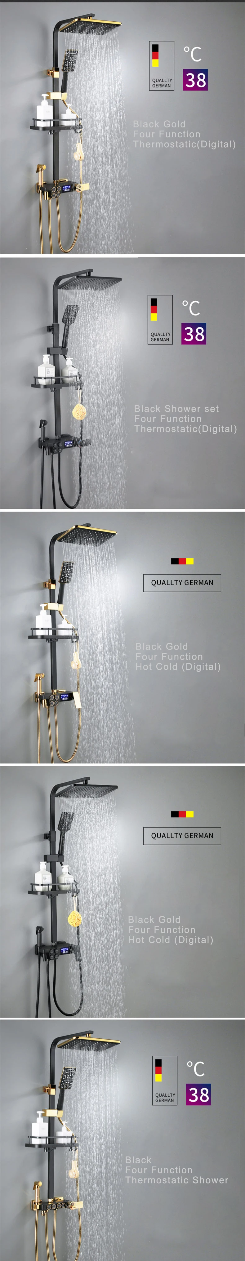 Digital Shower Set Luxury Black Gold Thermostatic Shower System Rainfall Spa Shower Head Brass Bathtub Faucet Digital Shower Set
