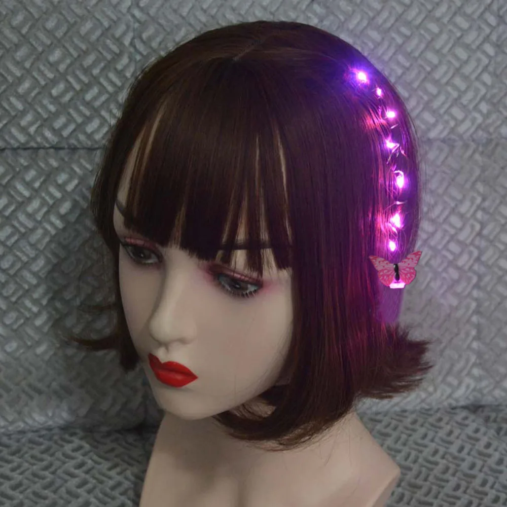With this hair LED lights string, you can DIY any hair style . Length: about 50cm . Powered by butoon batteries (included and replacement) . Light mode: quick-blinking , slow- blinking , steady on , off