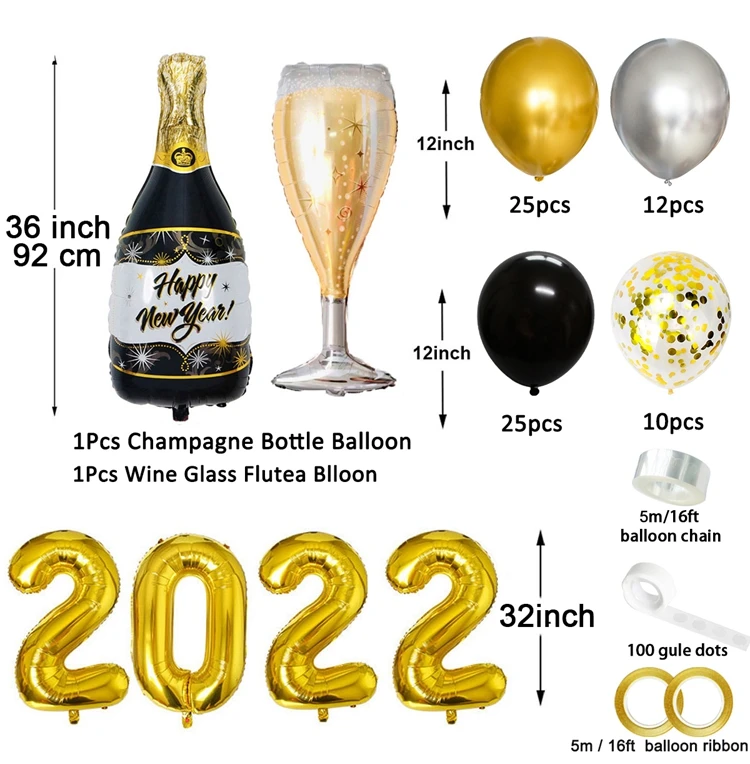 Happy New Year 2022 Foil Balloons 2021 Merry Christmas Eve Party Decorations For Home Ornaments Santa Claus Tree Xmas Snowman