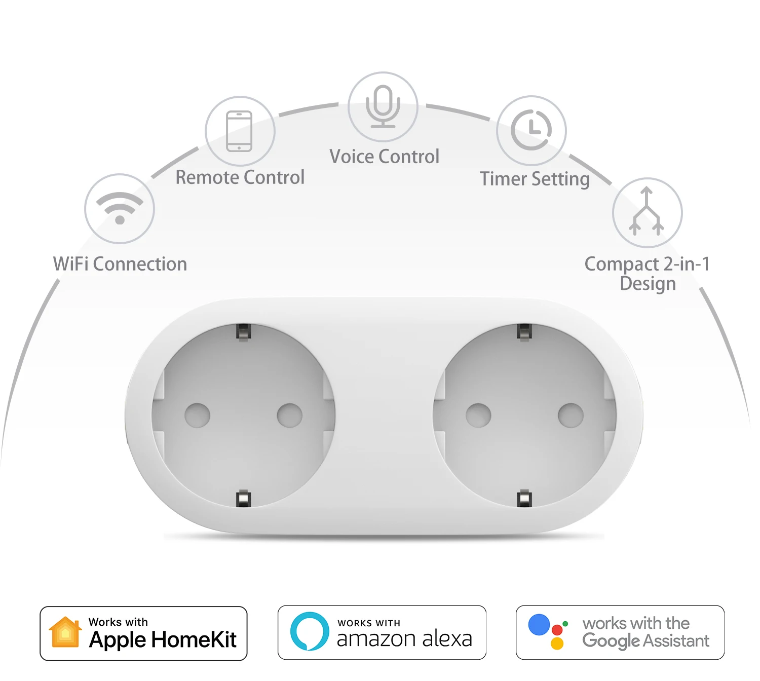 HomeKit 2 In 1 WiFi Smart Plug Dual Outlet EU/US Smart Socket Remote Voice Control Support Alexa Google Home SmartThings No Hub