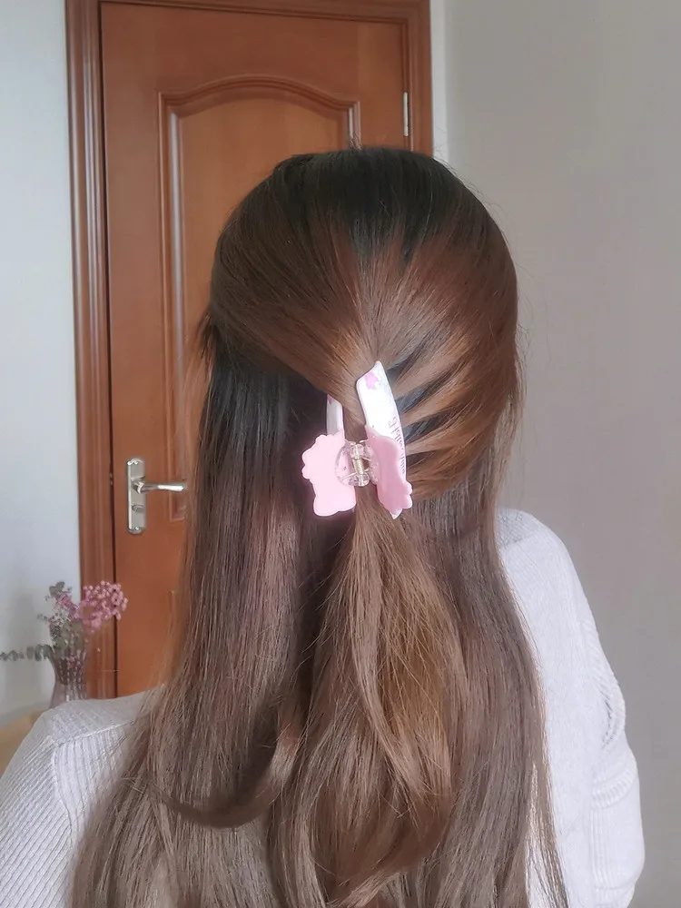 Kawaii HelloKittys Acrylic Medium Grab Clip Back of Head Hair Catch Girl Hairpin KT Cat Grab Clip Girl Plush Toy Gift