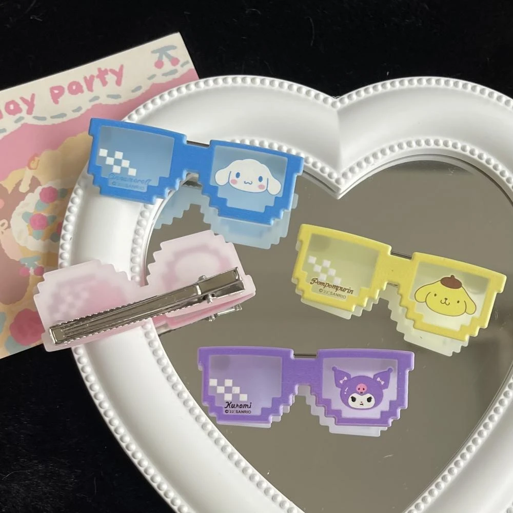 Kawaii Sanrio Sunglasses Hair Clip Hello Kitty Kuromi My Melody Cinnamoroll Pompompurin Card Issuance Hairpin Hair Accessories