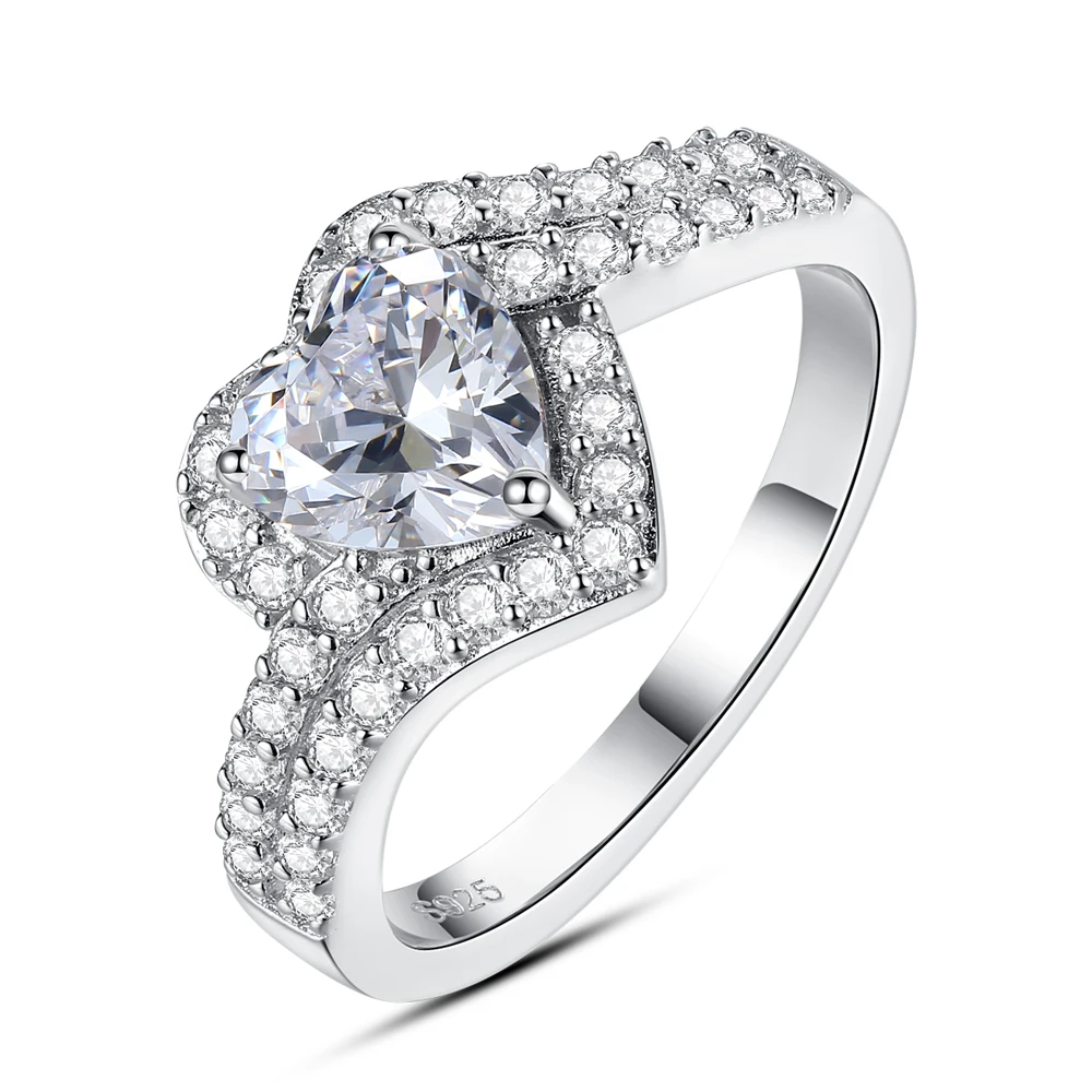 Malanda Classic Heart shaped Zircon Ring S925 Sterling Sliver Rings For Women Wedding Party Jewelry Accessories Girl Lover Gift