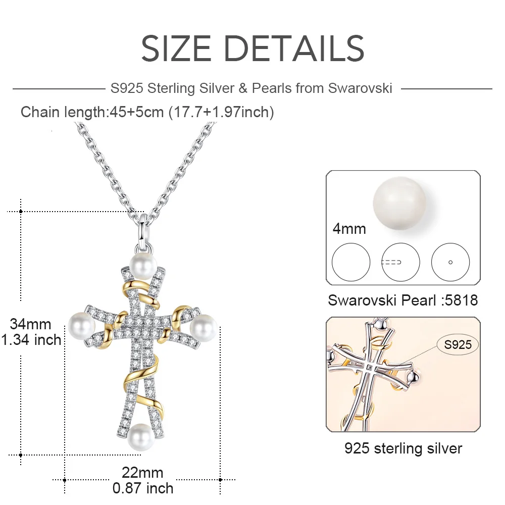 Malanda New Fashion 925 Sterling Sliver Pearl Cross Pendant Necklace For Women Party Jewelry Accessories lover Girl Gift