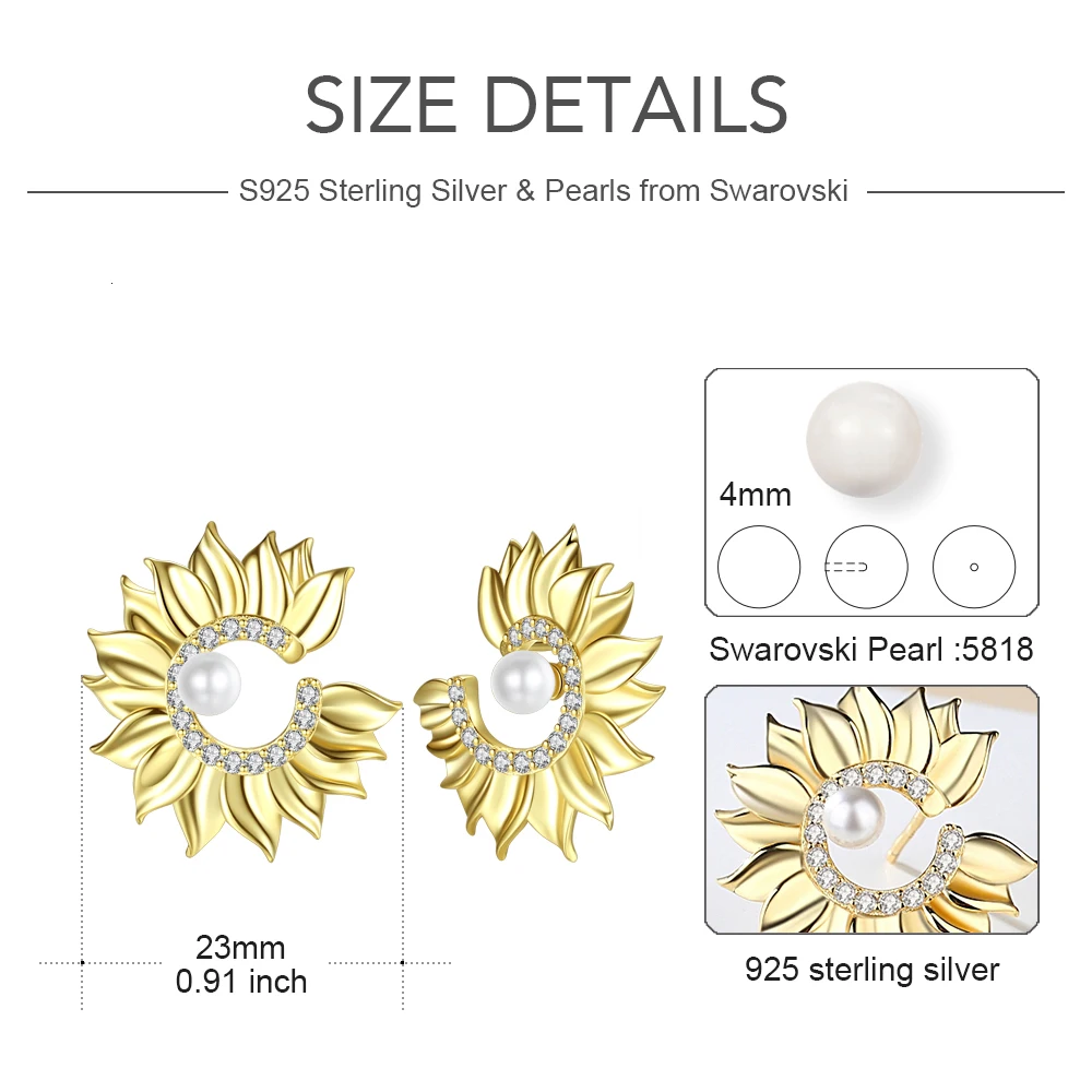 Malanda New Fashion S925 Sterling Silver Golden Sunflower Pearl Stud Earrings For Women Wedding Party Fine Jewelry Girl Gift