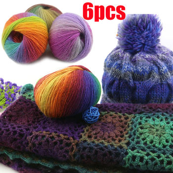 6pcs Fancy Rainbow Yarn fo Knitting Chunky Hand-Woven Colorful Knitting Scores 100% Wool Yarn Crochet Thread