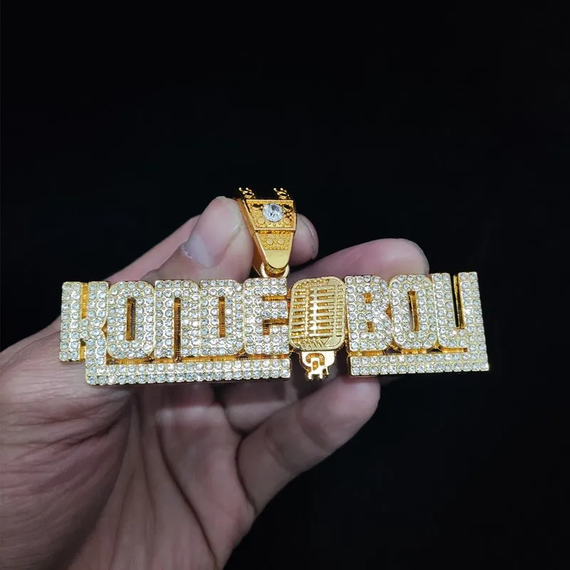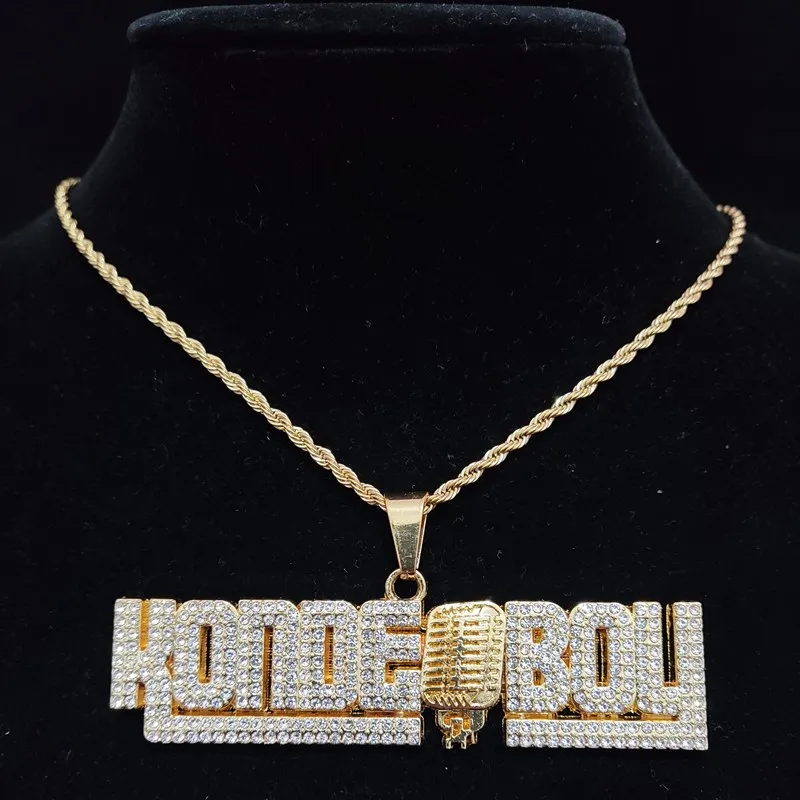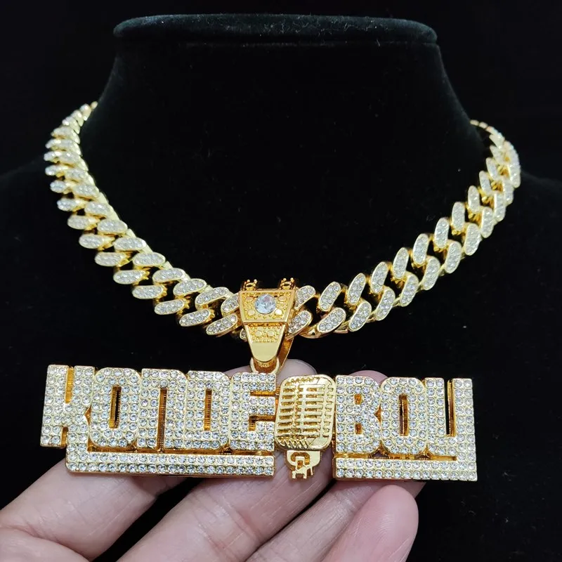 Men Women Hip Hop KONDE BOY Letter Pendant Necklace with 13mm Cuban Chain Iced Out Bling HipHop Necklaces Fashion Jewelry