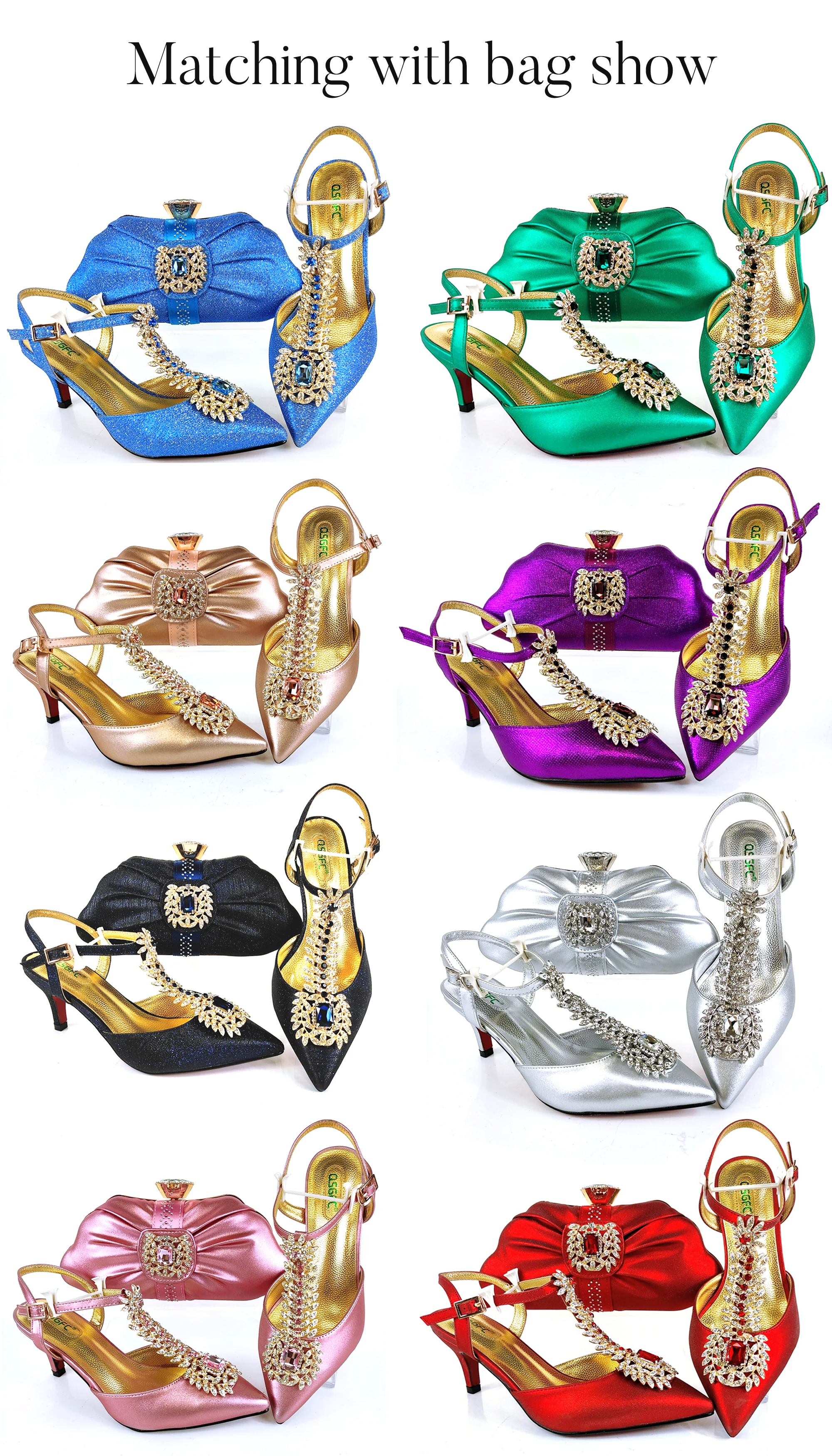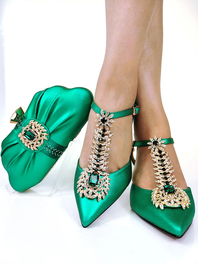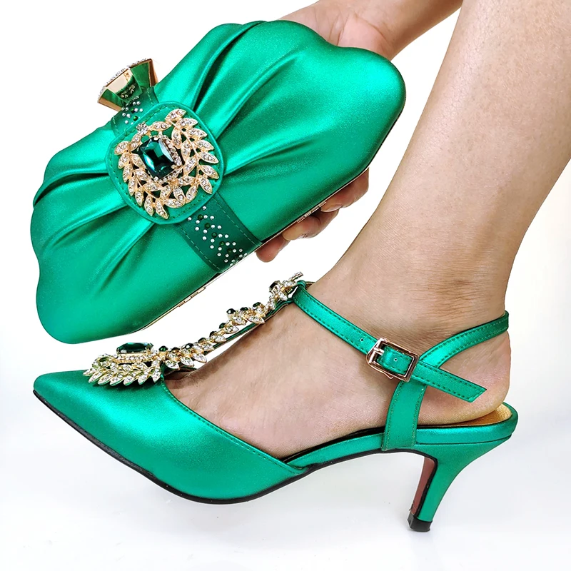 QSGFC 2021 Lastest Noble and Elegangt Fashionable Special Style Ladies Shoes and Bag Set in Green Color for Party and Wedding