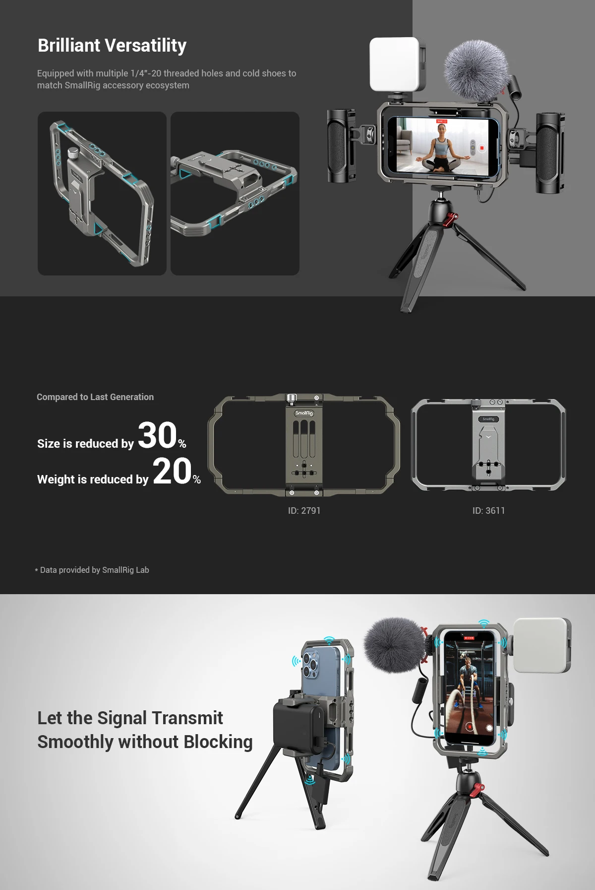 2. Comes with multiple mounting holes to support microphone, LED light, handles, tripod etc. to make your smartphone videography more professional.