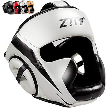 ZTTY Full-Covered Boxing Helmet Muay Thai PU Leather Training Sparring Boxing Headgear Gym Equipment Taekwondo Head Guard