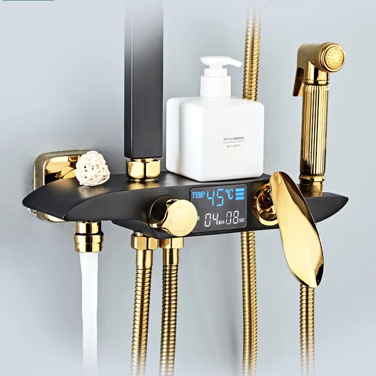 Thermostatic Shower Set Black Bronze Bathroom Bathtub Shower Faucet White Gold Shower System Rainfall Digital Shower Set