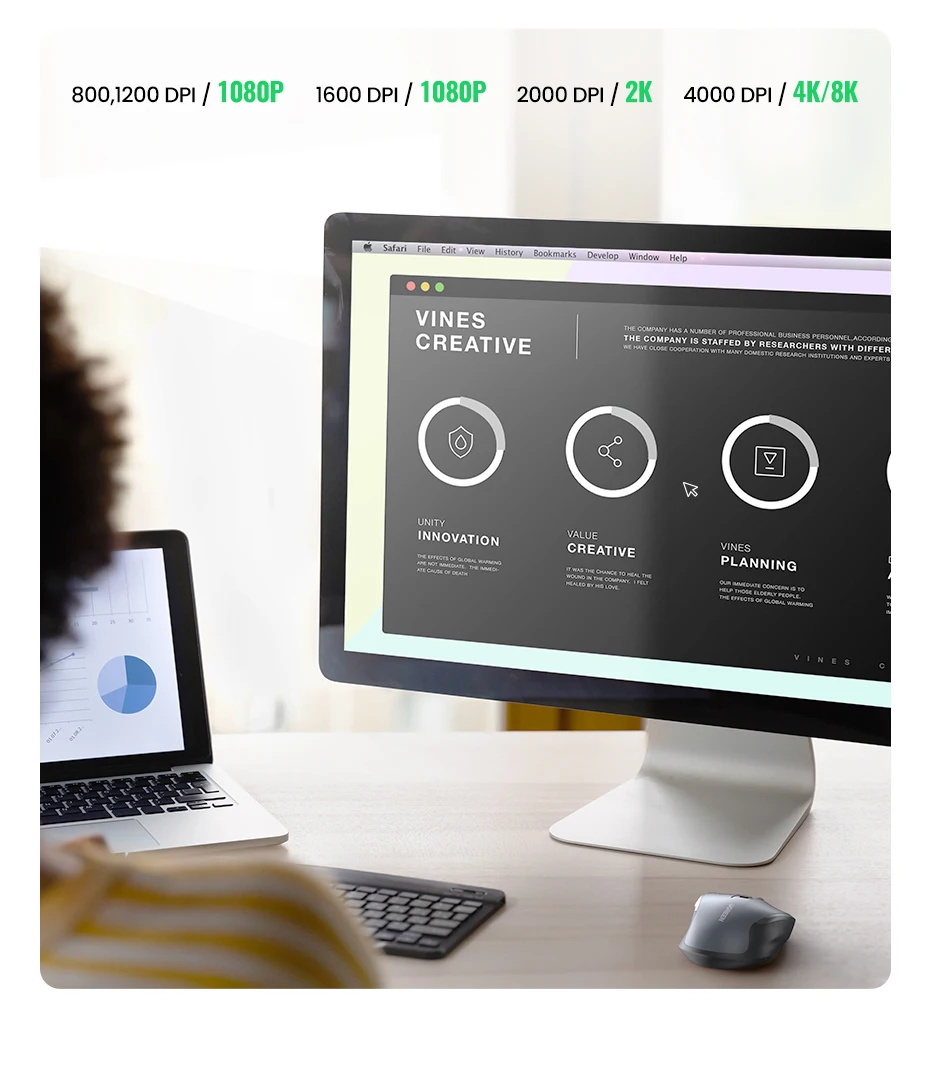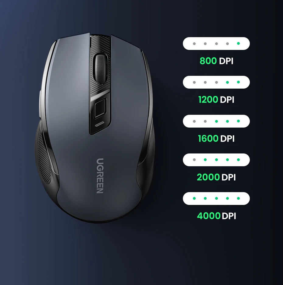5 Levels Adjustable DPI : The switch DPI levels of this wireless mouse among 800/1200/1600/2000/4000 to meet your special needs with higher sensitivity. Accurately restore the movements under high-speed operation, perfectly for 4K/8K HD Display.