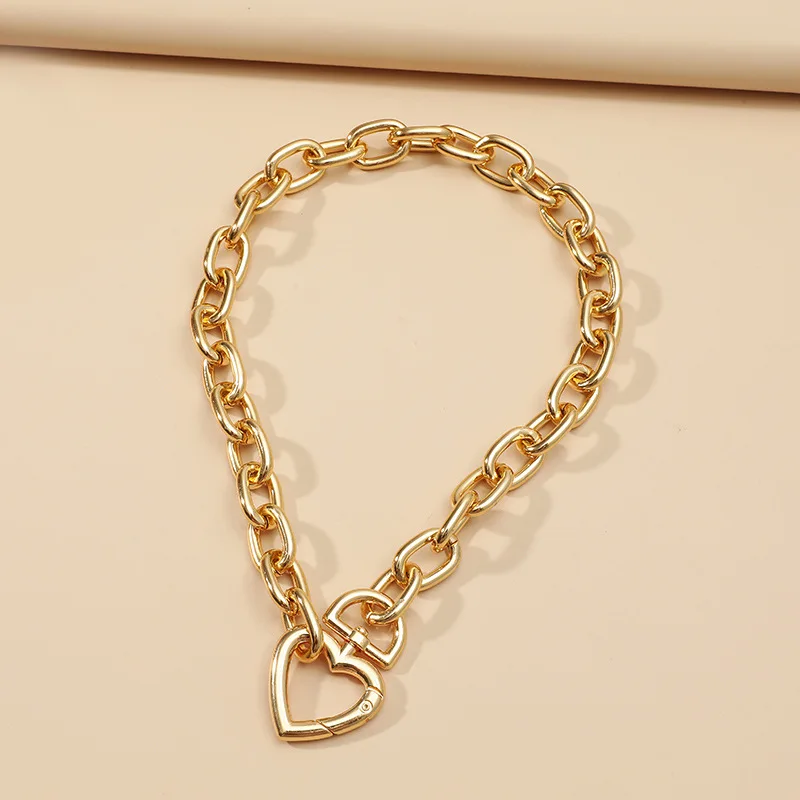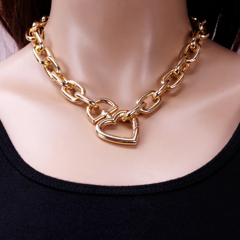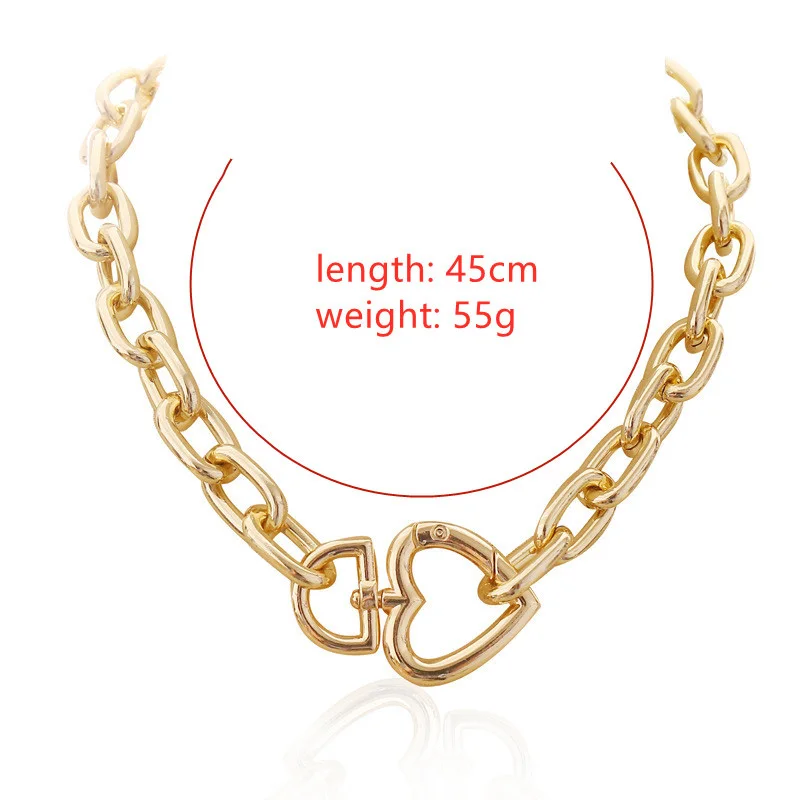 Wgoud 2021 Gold Color Heart Lock Choker Necklace For Women Punk Cuban Chain Cute Love Bijoux Clavicle Geometric Vintage Jewelry