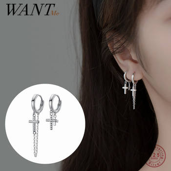 WANTME 925 Sterling Silver Vintage Punk Cuban Link Chain Cross Pendant Huggie Earrings for Men Women Rock Fine CZ Zircon Jewelry