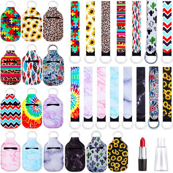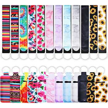 New Year Party Gift 15 Sets Chapstick Holder Keychains with Neoprene Wristlet Keychain Lanyards for Girls Women Accessories