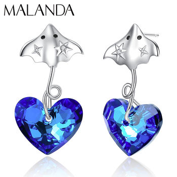 Malanda New Devil Fish Heart Crystal From Swa S925 Sterling Silver Drop Earrings For Women Wedding Party Fine Jewelry Gift